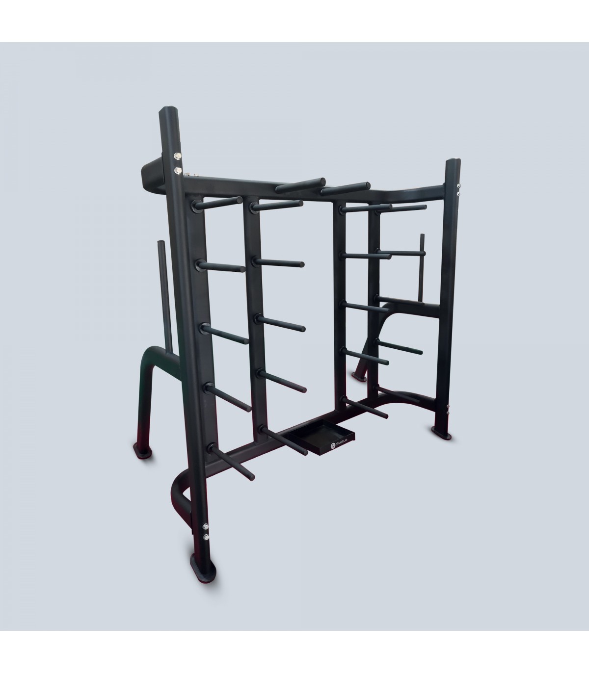 Rack 30 Kits, specially designed for efficient storage of your kits Pump. This sturdy rack organizes up to 30 complete kits, optimizing space and facilitating access to your equipment. Ideal for gyms or training areas, it provides secure, aesthetic storage while keeping your equipment within easy reach. 20 x 310 mm spindles for ø28 mm discs. Central surface for vertical storage of bars. Metal structure. Holds approx. 30 kits, depending on size, from 8 to 32 kg with Ø28mm discs.